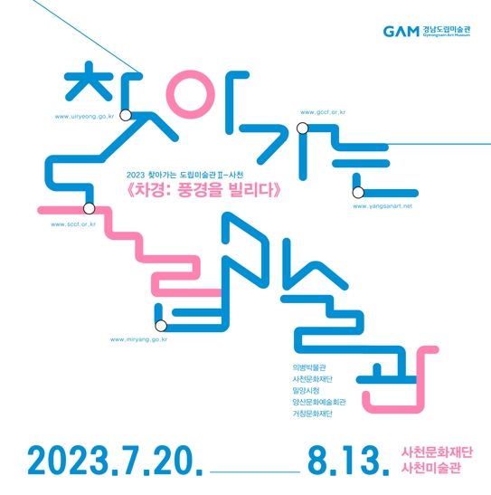 17일 사천문화재단에 따르면 7월 20일부터 8월 13일까지 사천미술관에서 《차경: 풍경을 빌리다》라는 주제로 ‘찾아가는 도립미술관Ⅱ-사천’ 전시를 열고, 여러 작가의 시선으로 담아낸 풍경화 작품들을 선보인다.