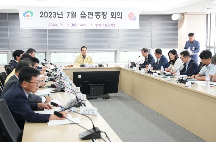 이번 회의는 지난 주말 발생한 수해와 관련 각 읍면동의 피해 상황을 공유하고 주민 피해를 최소화할 수 있도록 신속한 복구에 최선을 다할 것을 당부하기 위해 열렸다.