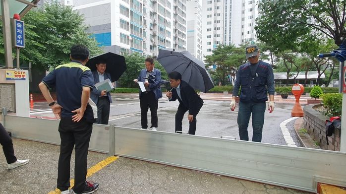 시는 3,600만 원을 투입해 침수 우려가 있다고 판단되는 침수방지시설 1개소당 400만 원, 단지당 최대 600만 원씩 지원했다. 장마 대비 7월 중순 이전에 물막이를 설치할 예정이었으나 연일 집중호우가 내림에 따라 당초 계획을 앞당겨 관리주체와 물막이 설치업체를 독려해 5개 단지에 설치를 완료했고 1개 단지도 이달 중 완료할 예정이다.