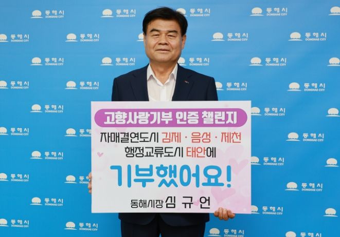 [제주교통복지신문 김강석 기자] 심규언 동해시장은 최근 고향사랑기부제의 성공적인 안착 및 기부문화 확산을 위해‘고향사랑기부 인증 챌린지’에 동참했다고 밝혔다.