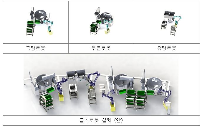 급식로봇은 전국 최초로 서울 성북구 숭곡중학교(교장 계경희) 조리실에 이번 2학기부터 총 4대(볶음․국탕․튀김 로봇 등)가 시범 도입되며, 한국 프렌차이즈 협회와 함께 조리레시피 매뉴얼도 개발할 계획이다.