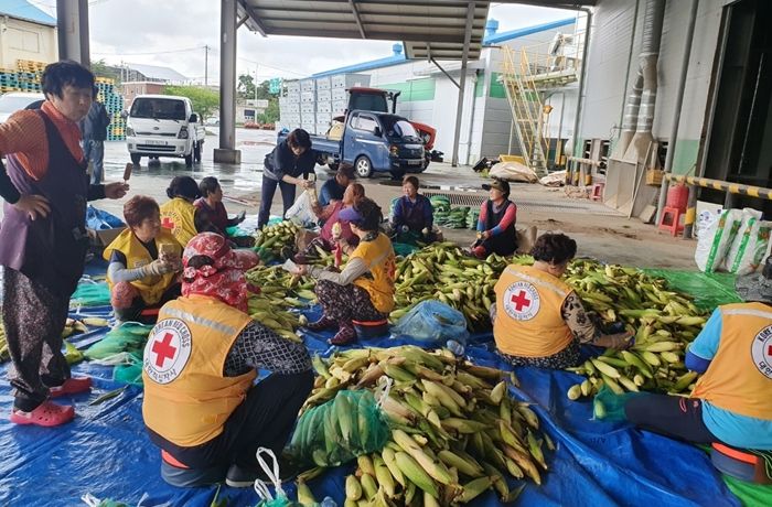 [제주교통복지신문 김강석 기자] 김제시 백산면 지역사회보장협의체는 7월 18일 협의체위원들과 적십자사 회원 30여 명이 참여한 가운데 백산면 상정리 소재 1,600㎥의 밭에서 '사랑의 옥수수 나눔' 옥수수 수확 작업을 실시했다.