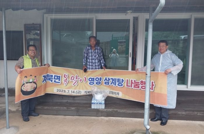 황우상 계북면장은 “지역의 어르신들과 취약계층이 무덥고 궂은 여름 날씨 때문에 약해진 체력을 이번 나눔으로 기력을 보충하고 행복하고 생기있게 생활하셨으면 좋겠다”고 전했다.