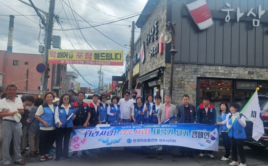 [제주교통복지신문 김강석 기자] 한국자유총연맹 경주시지회는 제75주년 제헌절을 맞이해 지난 14일 안강읍 일원에서 ‘나라사랑! 경주사랑! 태극기 달기’ 캠페인을 실시했다.