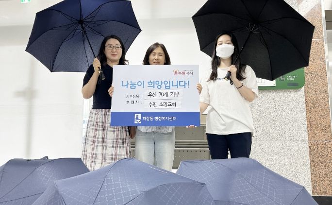 신동진 수원소망교회 담임목사는 “올해 폭우 피해가 더 이상 발생하지 않길 바라는 마음을 우산 70개에 담았다”며 “우리 이웃을 위해 요긴하게 쓰였으면 좋겠다”고 말했다.