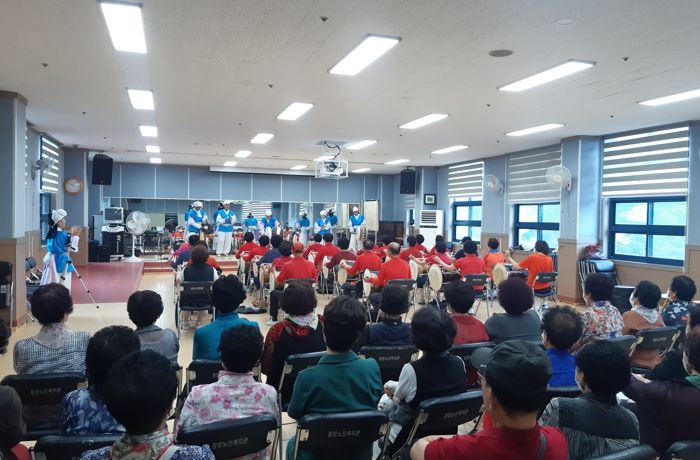 공연은 풍물놀이, 해금 연주, 선반 설장구, 사물놀이 등으로 이뤄졌으며, 출연진과 관객 어르신들이 함께 민요를 합창하는 등 직접 참여하고 소통하는 장을 마련해 더욱 풍성한 자리가 됐다.