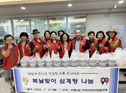 이번 행사는 부평1동 지역사회보장협의체 위원들의 후원으로 준비됐으며, 중복을 맞아 무더위에 지친 홀몸어르신들이 건강한 여름을 보낼 수 있도록 마련됐다.