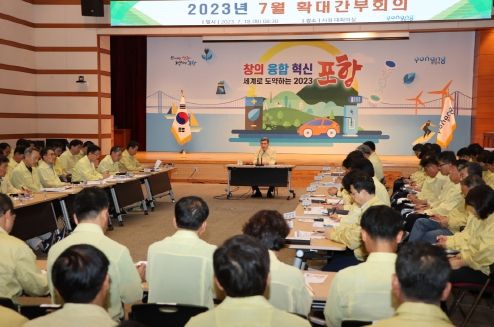 [제주교통복지신문 김강석 기자] 이강덕 포항시장은 18일 개최된 확대간부회의를 주재하며 “시민 안전을 최우선에 두고 철저한 사전 준비와 유사시 신속한 대응으로 극한 호우에 대비해 피해 최소화에 만전을 기해 줄 것”을 주문했다.