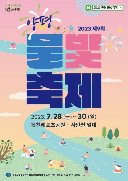 [제주교통복지신문 김강석 기자] 옥천면물축제추진위원회가 추진하는 ‘2023 제9회 양평물빛축제’가 오는 28일부터 30일까지 3일간의 일정으로 옥천레포츠공원과 사탄천 일원에서 개최된다.