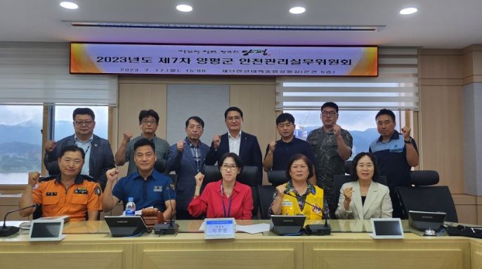 양평군 안전관리실무위원회는 지주연 부군수를 위원장으로 양평경찰서와 소방서, 한국전력공사 양평지사 등 관계 기관 실무자 16명으로 구성되어 있으며, 이번 7차 회의에서는 ‘제9회 양평물빛축제(2023. 7. 28~30)’의 안전관리계획 적정성과 안전관리 전반에 대해 안전관리실무위원회 위원들의 의견을 듣고 심의하기 위해 이뤄졌다.