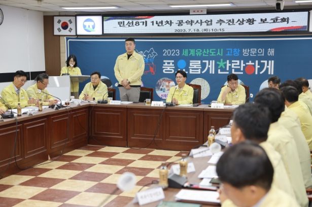 [제주교통복지신문 김강석 기자] 고창군이 18일 오전 2층회의실에서 심덕섭 군수 주재로 민선8기 공약사업 추진상황 보고회를 개최했다.