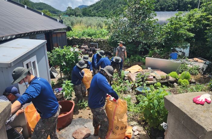 지난 14일부터 시작된 집중호우로 인하여 주택피해를 입은 어르신은 근처 마을회관으로 긴급대피를 하셨으며, 17일 오후 변산면과 1대대 군장병들은 어르신이 무사히 댁으로 귀가하실 수 있도록 주택 침수로 엉망이 된 집안을 정리하는 작업을 도왔다.