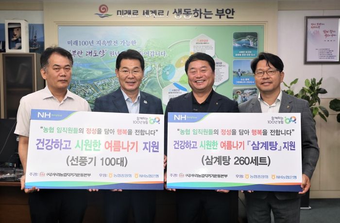 권익현 군수와 박병철 노조위원장, 김삼형 지부장, 김종수 부안지역자활센터장 등이 참석한 가운데 개최된 이번 전달식은 기나긴 장마와 무더위로 인해 몸과 마음이 지친 농촌지역 어르신과 소외된 이웃들에게 건강하고 시원한 여름나기에 도움을 주고자 마련됐다.