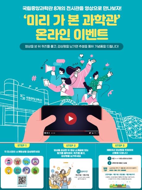 [제주교통복지신문 김강석 기자] 국립중앙과학관(관장 이석래)은 7월 20일부터 8월 31일까지 전 국민을 대상으로 '미리 가 본 과학관’ 온라인 이벤트를 진행한다.