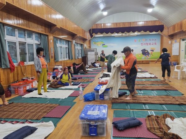 익산지역 주민들은 평균 329mm 기록적인 폭우로 긴급대피 상황에 놓인 이웃들이 안전하게 대피소로 임시거처를 이용할 수 있도록 돕고 식사와 후원물품들을 지원했다.