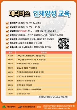 [제주교통복지신문 김강석 기자] 대구광역시는 대구 메타버스 산업의 뿌리를 지탱할 미래 지역인재 양성하기 위한 ‘메타버스 인재양성 교육’ 참가자를 7월 28일까지 공개모집한다.