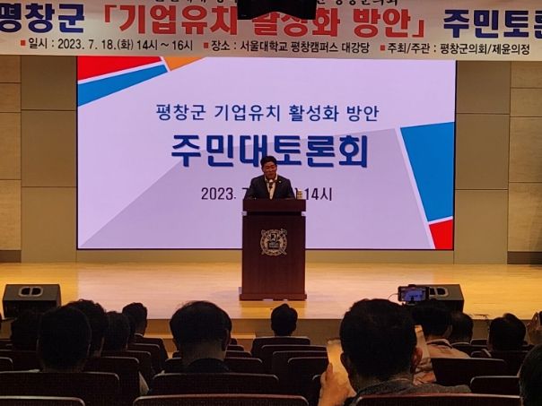 [제주교통복지신문 김강석 기자] 평창군의회는 오늘(18일) 14시 서울대학교 평창캠퍼스 대강당에서 ‘평창군 기업유치 활성화 방안 주민대토론회’를 개최했다.