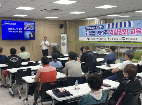 이번 교육은 관광객이 많이 찾는 아귀찜거리, 복요리거리 등 창원대표음식 특화거리 내 외식업 영업주 50여명을 대상으로 최신 외식업 마케팅과 SNS 트렌드 변화 등을 전달하고 특화거리 음식점 실제 홍보 사례 분석을 통해 영업주들에게 큰 호응을 얻었다.