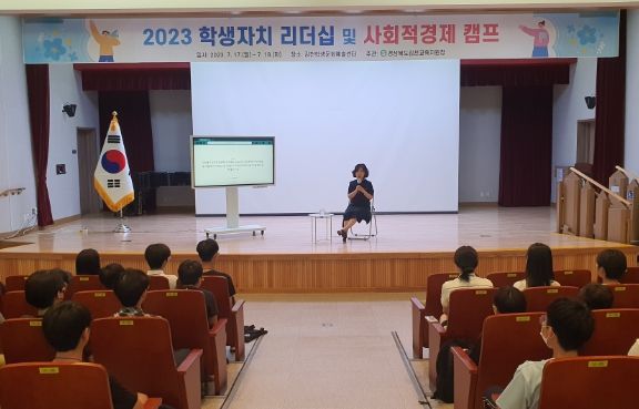 [제주교통복지신문 김강석 기자] 경상북도김천교육지원청은 7월 17일부터 18일까지 김천학생문화예술센터 드림마루 등에서 초·중·고등학교 학생회 임원 46명을 대상으로 2023 학생자치 리더십 및 사회적 경제 캠프를 실시했다.