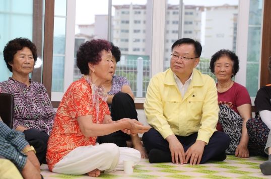 이어 홍 시장은 이 지역의 주민이 대피하고 있는 새마을경로당을 찾아 주민들을 위로했다. 경로당에는 7명의 주민이 대피해 있으며 현재 상황을 예의주시하고 있는 중이다.