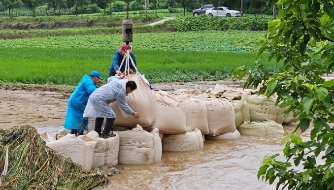 18일에는 소이면 금고리에서 농로가 세굴돼 농기계가 통행할 수 없게 되자 소이면 지역 자율방재단 10명이 마대에 모래를 담아 응급 복구를 진행했다.