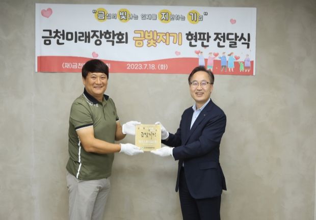 금천구는 올해부터 장학회에 정기적으로 일정 금액을 기부하는 업체에 ‘금빛지기’ 현판을 증정한다. 이를 통해 구민들에게 업체를 홍보하고, 지역 내 기부 문화를 확산시킨다는 취지다.