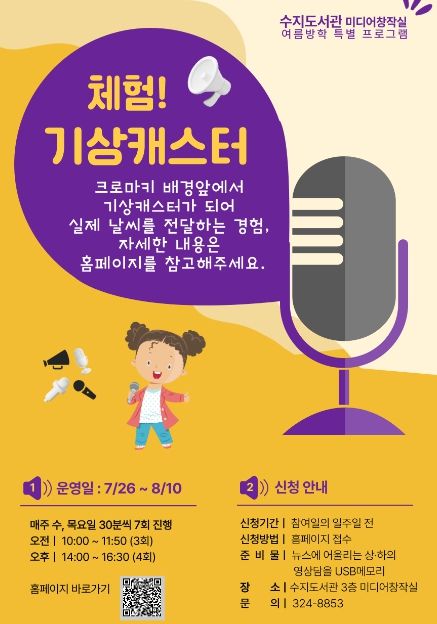 시는 앞서 지난 3월에도 수지도서관에서 ‘리틀 뉴스 캐스터’ 프로그램에 진행해 참가자들의 큰 호응은 얻은 바 있다.