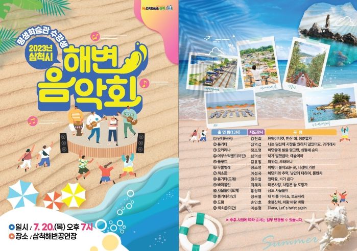 [제주교통복지신문 김강석 기자] 아름다운 달빛 아래 여름밤의 낭만과 추억을 선사할 '2023 삼척시 평생학습관 수강생 해변음악회'가 7월 20일(목) 저녁 7시 삼척해변 공연장에서 펼쳐진다.
