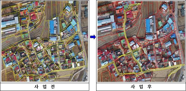지적재조사사업을 하면 토지경계를 분명히 해서 경계분쟁을 해소하고, 불규칙한 모양의 토지를 정형화할 수 있으며, 진입로가 없는 맹지는 경계조정으로 도로를 확보해 토지의 활용가치를 높여주는 효과가 있다.