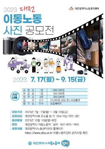 [제주교통복지신문 김강석 기자] 대전시는 대전시 노동권익센터와 함께 이동노동 존중을 주제로 ‘2023 대전 이동노동 사진 공모전’을 개최한다.