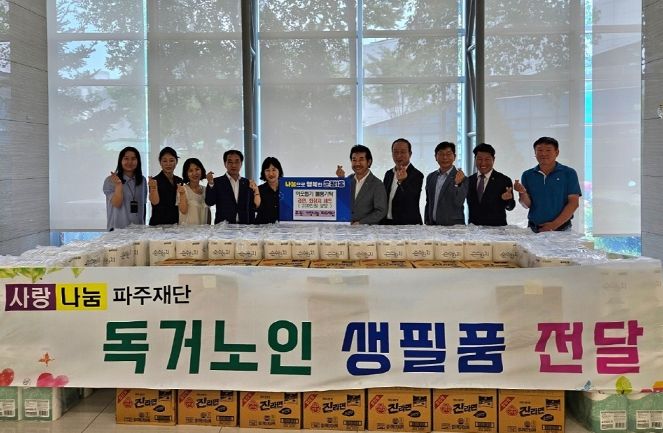 이날 사랑나눔 파주재단에서는 운정1동 행정복지센터를 방문해 어려운 이웃들에게 전달해 달라며 라면과 화장지 세트 등 물품을 전달했다. 기탁된 물품은 관내 저소득 홀몸 어르신 및 취약계층에게 지원될 예정이다.