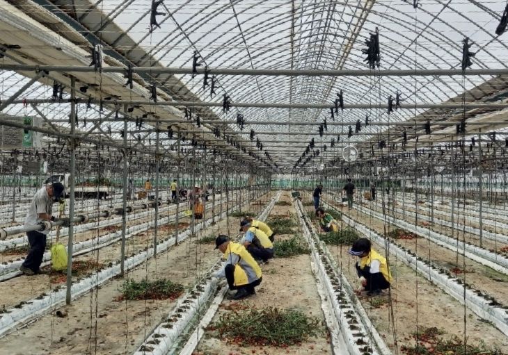 이날 26명의 적성면 실버경찰대는 일손 부족으로 힘든 토마토 농가에 일손을 보탰다.