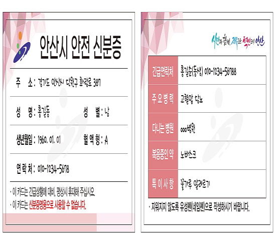 [제주교통복지신문 김강석 기자] 안산시는 재난 및 사고로 피해자가 의사소통이 불가능한 위급상황 발생 시 현장에서 신속한 구호조치를 위해 ‘안전신분증’ 보급에 나선다고 19일 밝혔다.
