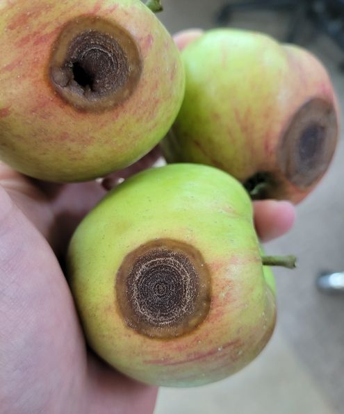 특히, 사과나무 윗부분에 탄저병 과실이 발생했을 때는 병원균이 빗물 등을 따라 아랫부분 가지와 과실로 전염될 수 있어 수시로 발병된 과실은 제거해야 한다.