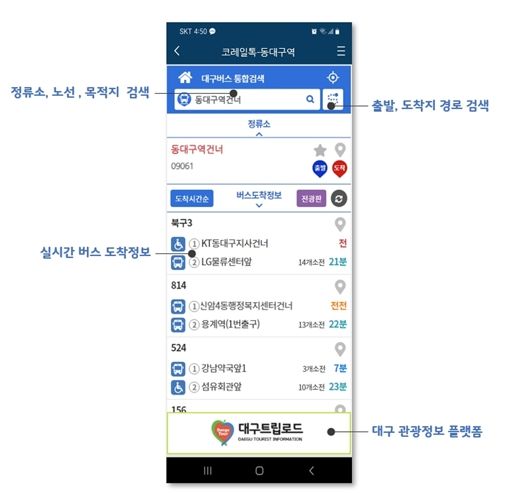 동대구역을 비롯한 대구광역시의 3개 철도역 인근 버스정류소를 이용하는 버스 승객은 하루 평균 약 1만 4천 명에 달하며, 이번 서비스로 인해 이들이 더욱 쉽게 대중교통정보를 활용할 수 있게 됐다.