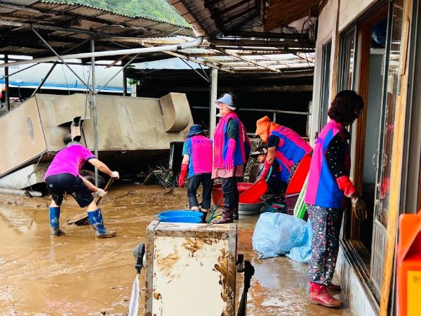 한국생활개선봉화군연합회원 19명은 지난 18일 법전면의 수해 현장을 찾아 침수피해를 입은 가구의 복구를 위해 침수됐던 가재도구를 청소하며 구슬땀을 흘렸다.