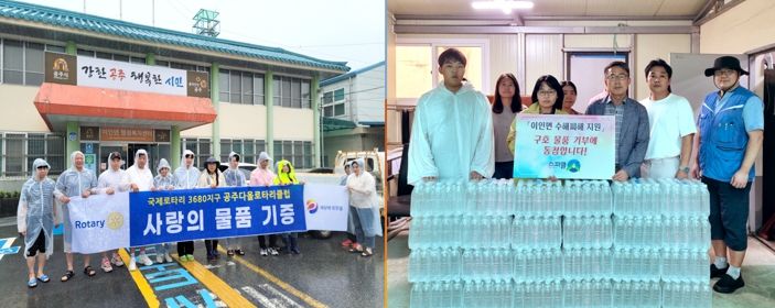 국제로타리 3680지구 공주다올로타리클럽에서도 같은 날 수해민을 위한 생수를 이인면에 전달했다.