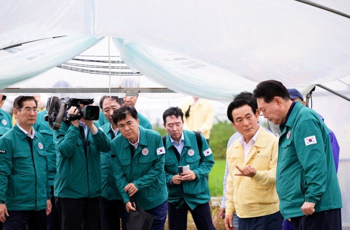 [제주교통복지신문 김강석 기자] 윤석열 대통령이 18일 논산시 성동면 육묘 농가를 방문해 집중호우 피해상황을 점검했다. 윤 대통령은 피해 농가주를 위로하며 국가 차원의 지원을 약속했다. 백성현 논산시장을 비롯한 시 관계자들에게는 대응조치에 총력을 다해달라 주문했다.