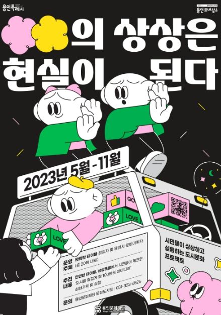 [제주교통복지신문 김강석 기자] 용인문화재단은 오는 23일부터 문화도시 사업 '○○의 상상은 현실이 된다' 프로젝트를 통해 시민 문화기획자들이 기획한 도시문화 콘텐츠를 운영한다.