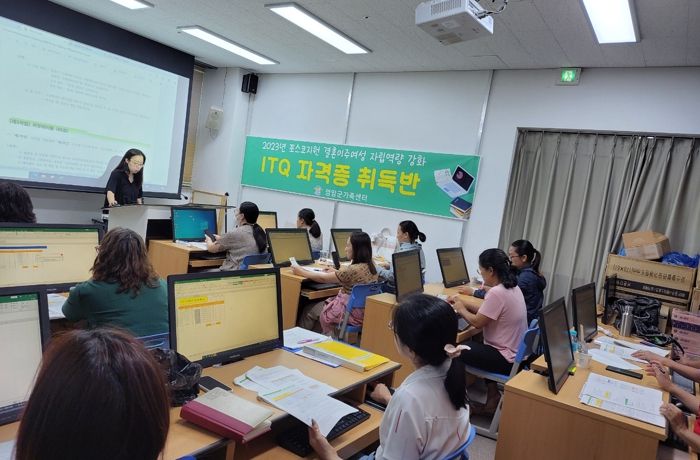 [제주교통복지신문 김강석 기자] 영암군가족센터가 결혼이주여성이 참여하는 정보기술자격(ITQ) 취득 컴퓨터 교육을 실시하고 있다.