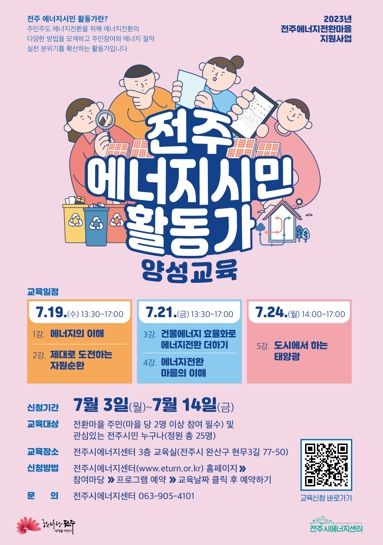 이번 교육에 대한 자세한 내용은 전주시에너지센터 누리집을 확인하거나, 전화로 문의하면 된다.