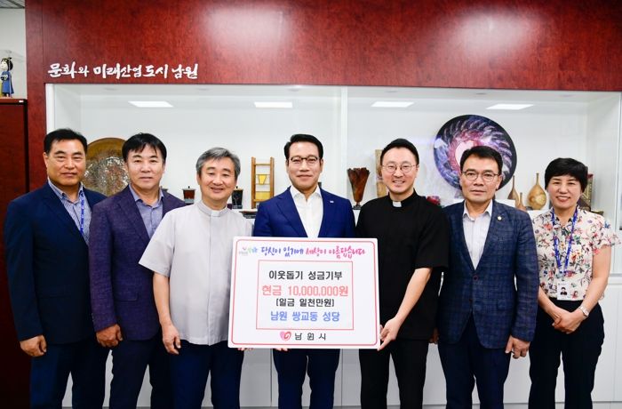 [제주교통복지신문 김강석 기자] 천주교 전주교구 남원 쌍교동 성당에서는 제93회 춘향제 행사기간 동안 음식 나눔 바자회를 통해 얻은 수익금 1,000만원을 19일 남원시노인복지관에 기증하여 훈훈한 정을 나누었다.