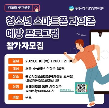 [제주교통복지신문 김강석 기자] 통영시청소년상담복지센터는 8월 10일에 진행하는 ‘청소년 스마트폰 과의존 예방 프로그램’ 참여자 30명을 7월 20일부터 모집한다.