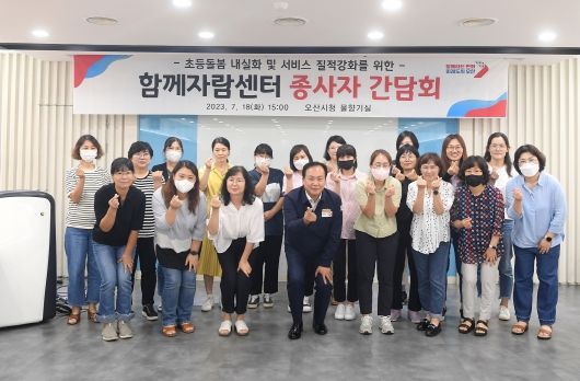 [제주교통복지신문 김강석 기자] 오산시는 지난 18일 시청 물향기실에서 초등돌봄 내실화 및 서비스 질적향상을 위한 ‘함께자람센터 종사자 2차 간담회’를 열었다고 밝혔다.