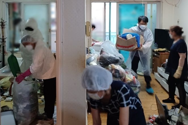 대상자 자택 내부는 음식물과 각종 쓰레기 등이 방문을 열 수 없을 정도로 쌓여있어 악취가 심하고 바퀴벌레 등 각종 해충들이 발생하는 등 일상생활이 어려운 상황이었다.