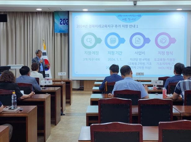 2024년 경북미래교육지구 추가 지정을 위한 마련한 이날 설명회에는 아직 사업을 운영하지 않는 영주, 영양, 영덕, 봉화, 울진, 울릉 지역의 시·군 업무담당자 및 교육지원청 관계자 30명이 참석했다.