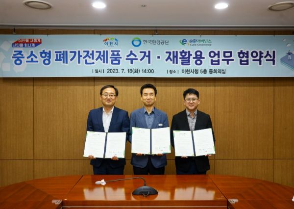 [제주교통복지신문 김강석 기자] 이천시는 18일 한국환경공단, E-순환거버넌스와 중소형 전자제품 수거·재활용을 위한 업무협약을 체결했다.