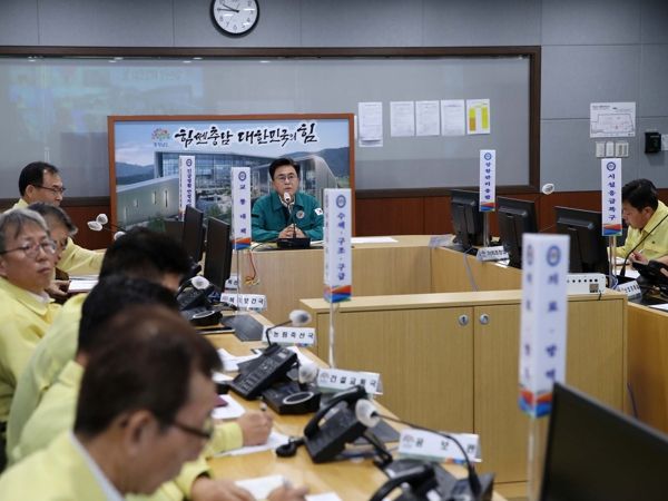 김 지사와 15개 시군 시장·군수 등이 참석한 가운데 연 이날 회의는 기상 전망 발표, 호우 피해·대처 계획 발표, 토론 등의 순으로 진행했다.
