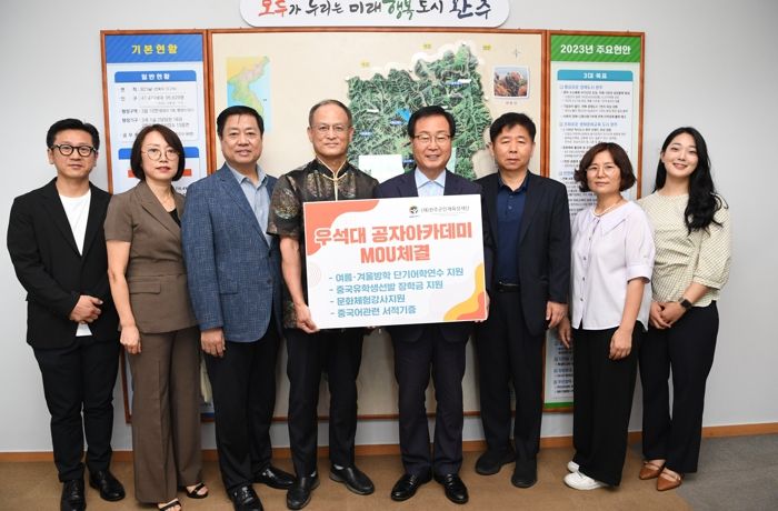 [제주교통복지신문 김강석 기자] 완주군인재육성재단이 19일 우석대 공자아카데미와 업무협약을 체결하고 중국어교육을 위해 상호협력하기로 했다.