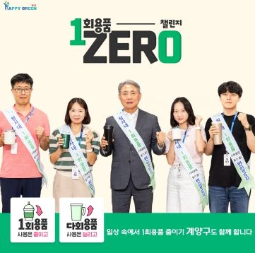 한편 계양구는 1회 용품 사용을 줄이기 위해 친환경 자원순환 청사를 운영 중에 있다. 청사 내 1회 용품 반입 금지, 전 직원 개인컵 사용, 텀블러 세척기 운영, 텀블러 가방 제공, 1회 용품 없는 행사 추진 등 다양한 시책을 통해 친환경 자원순환 청사가 되도록 하고 있다.